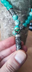Je me laisse porter par mes intuitions, mes ressentis, mes ancêtres, guides et protecteurs pour sentir quelles sont les meilleures combinaisons et charger, puis bénir les pendentifs. Chaque création porte une énergie spirituelle unique avec un nom propre à ma langue chamanique. Chaque création est le fruit d'une unité corps-esprit, tout comme chaque objet du shaman.